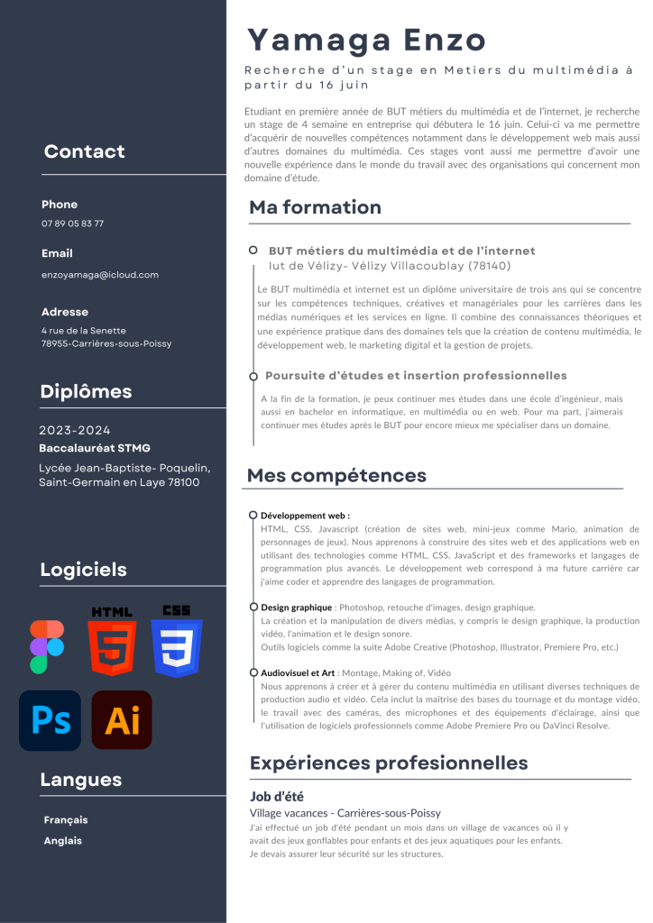 Email Address enzoyamaga@icloud.com Phone Numbers 0789058377 Pour toute offre de stage, veuillez consultez mon CV Veuillez activer JavaScript dans votre navigateur pour remplir ce formulaire.Email *JOIN