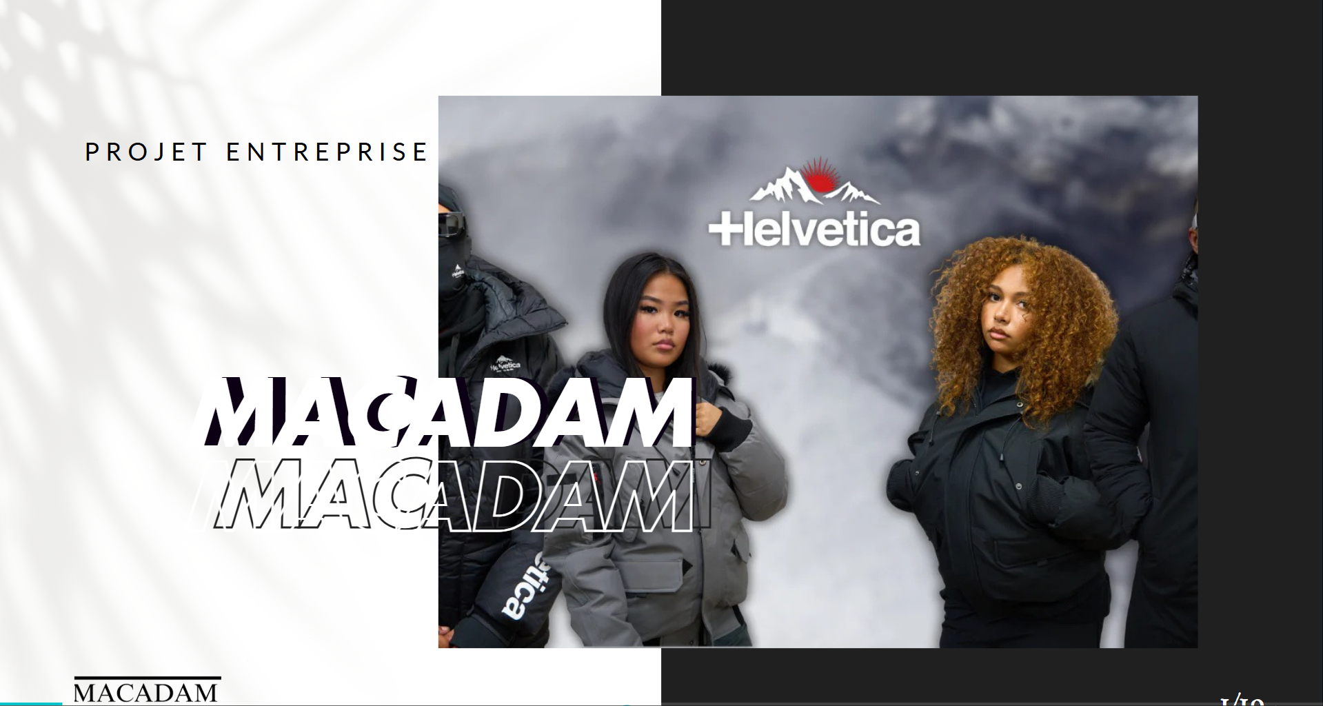 Dans le cadre d’un projet entreprise, j’ai travaillé sur Macadam, avec mes camarades, nous devions déployer une stratégie de communication pour une marque française de prêt-à-porter mixte orientée sportwear urbain. L’enseigne possède à la fois une boutique en ligne et un magasin physique, où elle propose des vestes, manteaux, blousons et accessoires issus de marques tendance comme Schott ou Helvetica.